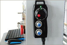 操控手輪 無(wú)線遙控裝置 任意位置可以輕松操控機(jī)床的啟動(dòng)和暫停,方便靈活。 |