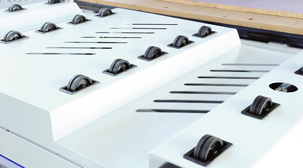 ◆上料滾輪裝置,減小板材與臺面的摩擦,保護板材表面。
